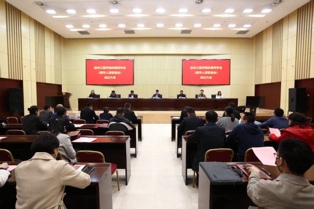 3月29日下午,徐州工程学院欧美同学会(留学人员联谊会)成立大会在中心校区召开。徐州市委统战部工会主席蒋晓军,我校党委副书记刘洋,中国矿业大学、江苏师范大学、徐州医科大学欧美同学会相关负责人及我校欧美同学会全体会员出席会议。校党委常委、组织部(党校、统战部)部长王逢博主持会议。